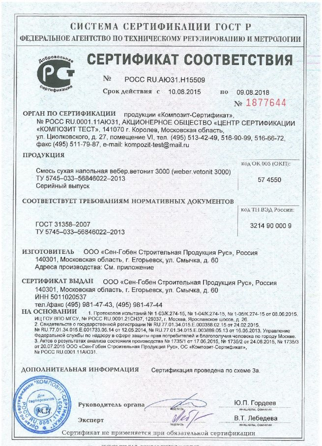 Сертификат соответствия на сухие смеси